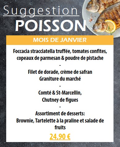 Vous pouvez également commander : Du 12 au 16 Janvier Du 19 au 23 Janvier Du 26 au 30 Janvier Du 2 au 7 Février