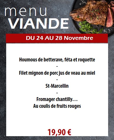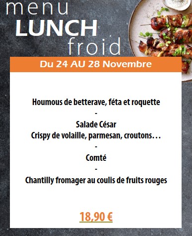 Du 17 au 21 Novembre Du1 au 5 Décembre Du 8 au 12 Décembre Du 15 au 24 Décembre --> Livraison offerte dès 6 repas